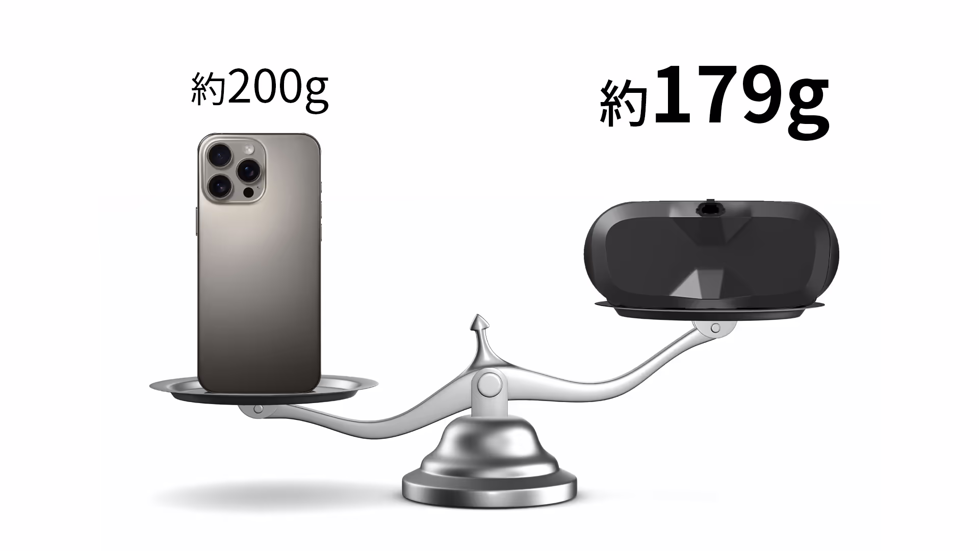 世界最高水準の解像度のマイクロOLEDパネルを搭載しながらも、部品0.1ミリ単位厚みにまでこだわり抜き、徹底した軽量化設計を施して実現した、179gという圧倒的軽さ。